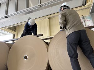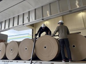 段ボール原紙のロール紙は重さ2トンを超えることも。